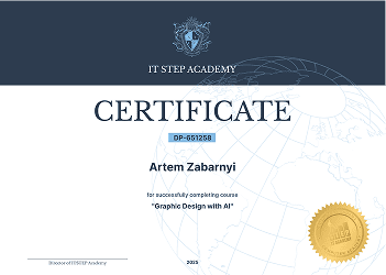 Dowód ukończenia kursu projektowania graficznego – do wykorzystania w serwisie LinkedIn, CV lub portfolio.